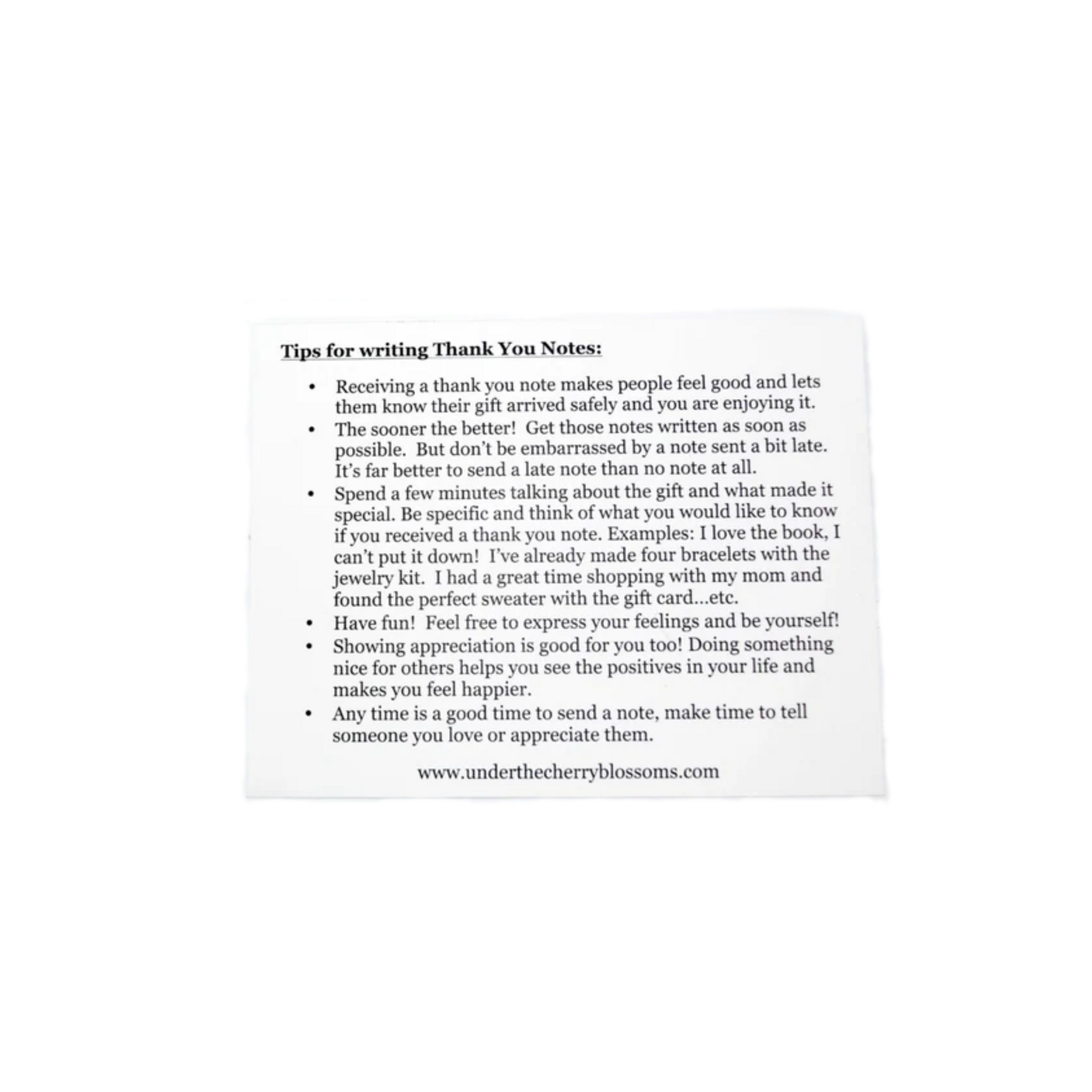 A helpful tip sheet on how and why to write meaningful thank you notes